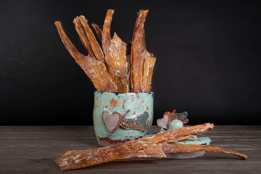 Geelhaar is een taaie nekspier van een rund. Zo gedroogd dat het een harde lekkere kauwsnack voor jouw hond is.